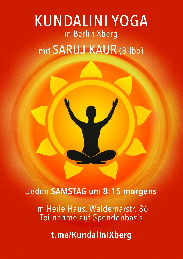 Liebe Berliner, zurzeit biete ich jeden Samstagmorgen von 8:15 bis 9:45 Uhr Kundalini-Yoga-Klassen im HeileHaus in Kreuzberg an. Die Teilnahme ist auf Spendenbasis. Matten und Kissen sind vorhanden. Kundalini Yoga aktiviert deine Lebensenergie und unterstützt dich dabei, dein volles Potenzial zu entfalten. Durch Atem, Bewegung und Meditation erlebst du eine Praxis, die dich körperlich und geistig stärkt und glücklicher macht. Anmeldung: https://t.me/KundaliniXBerg Ich freue mich auf euch! | |