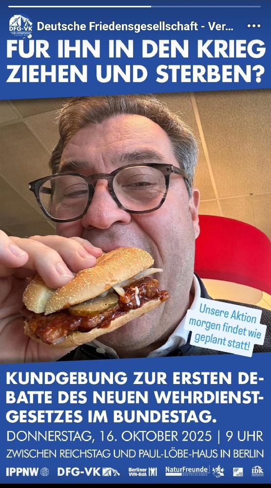 🔥 Für Reiner – für Freiheit! 🔥 📍 Bremervörde 📅 18.10.2025 ⏰ 17:00 – 18:00 Uhr 📌 Wesermünder Str. (B71) / Am Steinberg ❌ Er ist im Gefängnis, weil er unbequeme Fragen stellt. ✅ Doch Aufklärung und Wahrheit sind nicht aufzuhalten. 👉 Lasst uns erneut ein deutliches Zeichen setzen: Für Gerechtigkeit. Für Freiheit. Für Reiner. ➡️ Kommt friedlich, mit Plakaten, Fahnen und eurer Stimme. WIR für Frieden und Freiheit | |