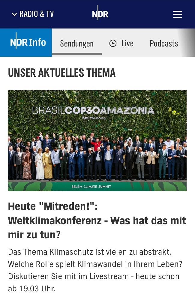 Klimakonferenz - Diskussionsrunde im Radio und Online - Online Events![]() | |